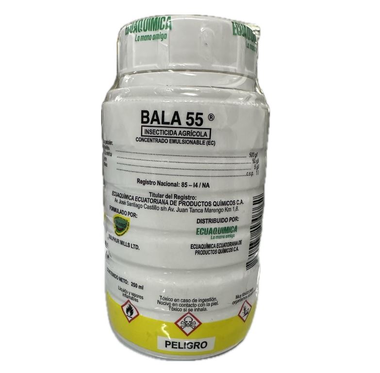 Bala 55 es un insecticida formulado con cipermetrina o mezcla similar de piretroides. Controla eficazmente plagas chupadoras y masticadoras en cultivos agrícolas y ornamentales. Ofrece acción inmediata, persistencia prolongada y excelente capacidad de volteo sobre los insectos.