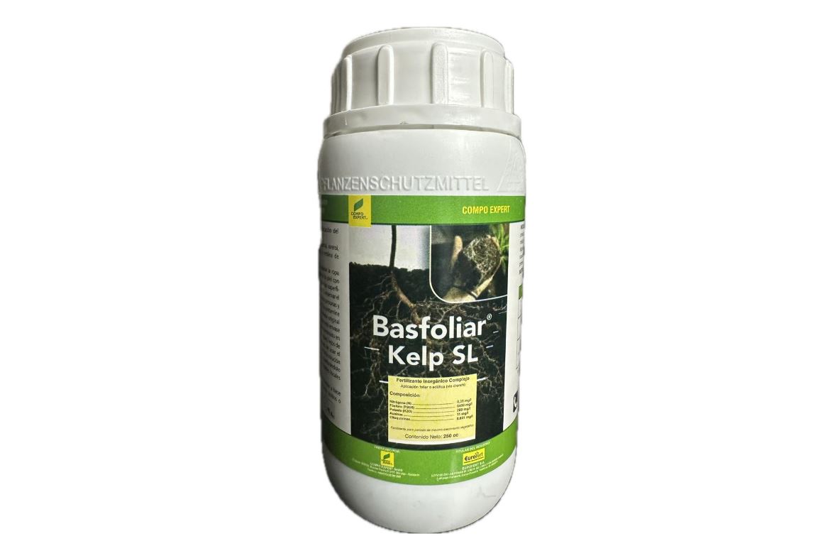 Basfoliar Kelp SL es un bioestimulante natural derivado de algas marinas que mejora la vitalidad, floración y resistencia al estrés de las plantas. Estimula el desarrollo radicular y potencia la absorción de nutrientes.