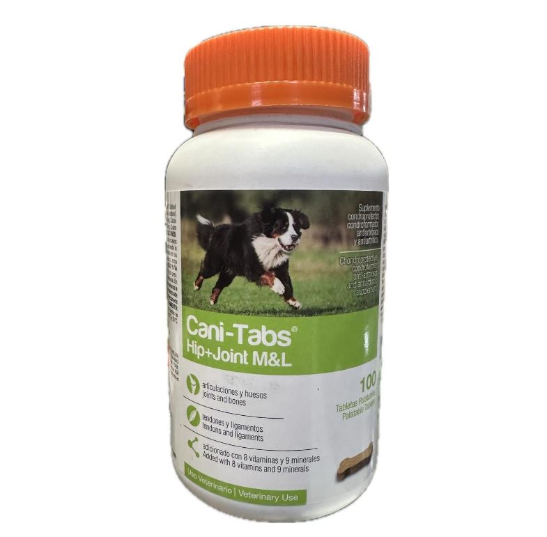 Cani Tabs Hip & Joint contiene glucosamina, condroitina y MSM, ingredientes que promueven la salud de las articulaciones y previenen el desgaste del cart铆lago. Perfecto para perros con problemas de movilidad o razas predispuestas a enfermedades articulares.
