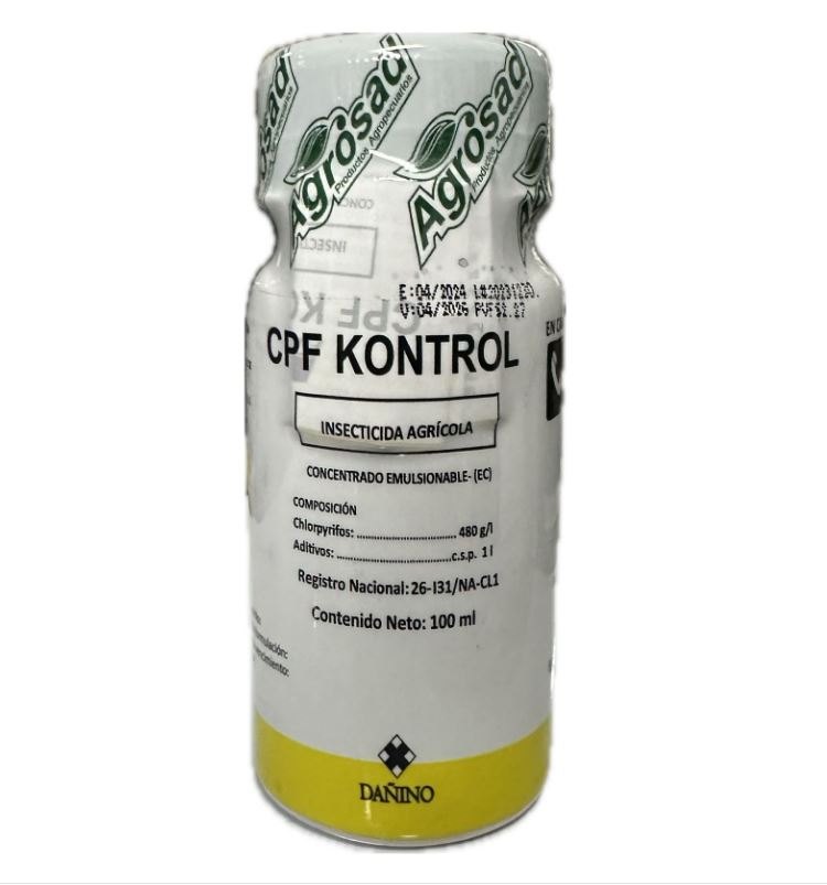 CPF Kontrol contiene clorpirifos, un insecticida organofosforado de amplio espectro utilizado para el control de plagas del suelo y del follaje. Actúa por contacto e inhalación, afectando el sistema nervioso de insectos como gusanos cortadores, trips, pulgones y escarabajos. Ideal para cultivos agrícolas y ornamentales.