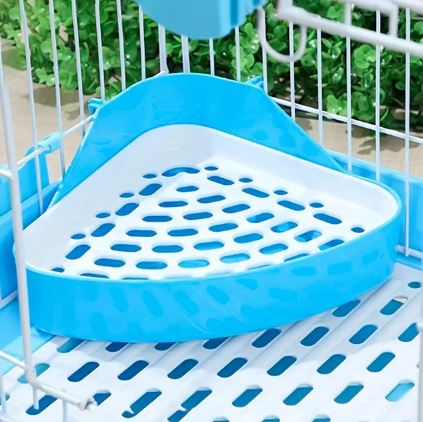 El esquinero sanitario para conejos ayuda a entrenar a tu mascota para que haga sus necesidades en un solo lugar, facilitando la limpieza de la jaula. Fabricado con materiales resistentes y seguros, mantiene el hábitat higiénico y ordenado.