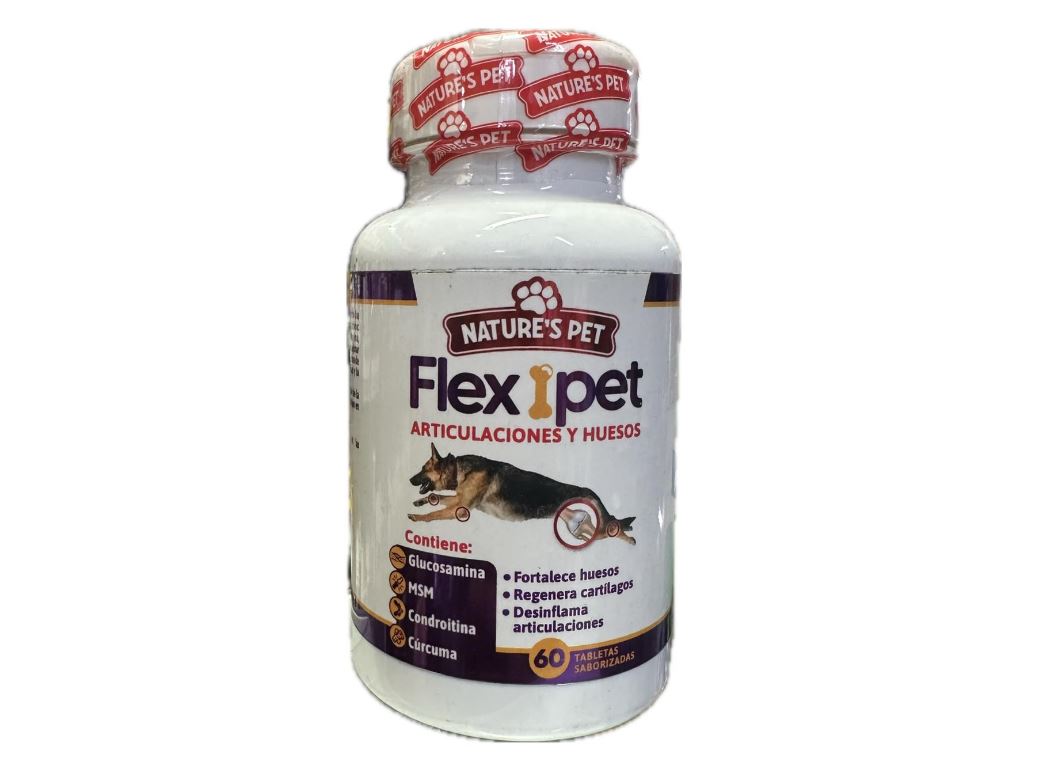 Flexi Pet de Nature-Pet es un suplemento natural para fortalecer huesos, articulaciones y ligamentos, formulado con colágeno, cúrcuma y MSM. Ayuda a reducir la inflamación y mejorar la movilidad de forma natural y segura.