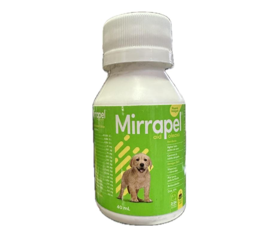 Mirrapel es un suplemento con omega 3, 6 y 9, biotina y zinc que favorece la salud de la piel y el pelaje, reduciendo la ca铆da del pelo, la resequedad y el picor. Ideal para mantener un manto brillante y saludable.