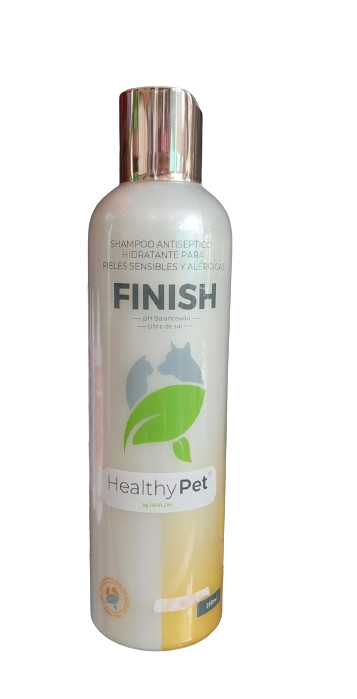 El Shampoo Healthy Pet Finish es un producto natural y terapéutico diseñado para la limpieza suave y el cuidado de pieles sensibles, alérgicas o con necesidades dermatológicas especiales. Su fórmula con aceite de Neem y otros principios activos de origen natural ofrece una acción antiséptica de amplio espectro (bactericida y fungicida) sin resecar la piel.